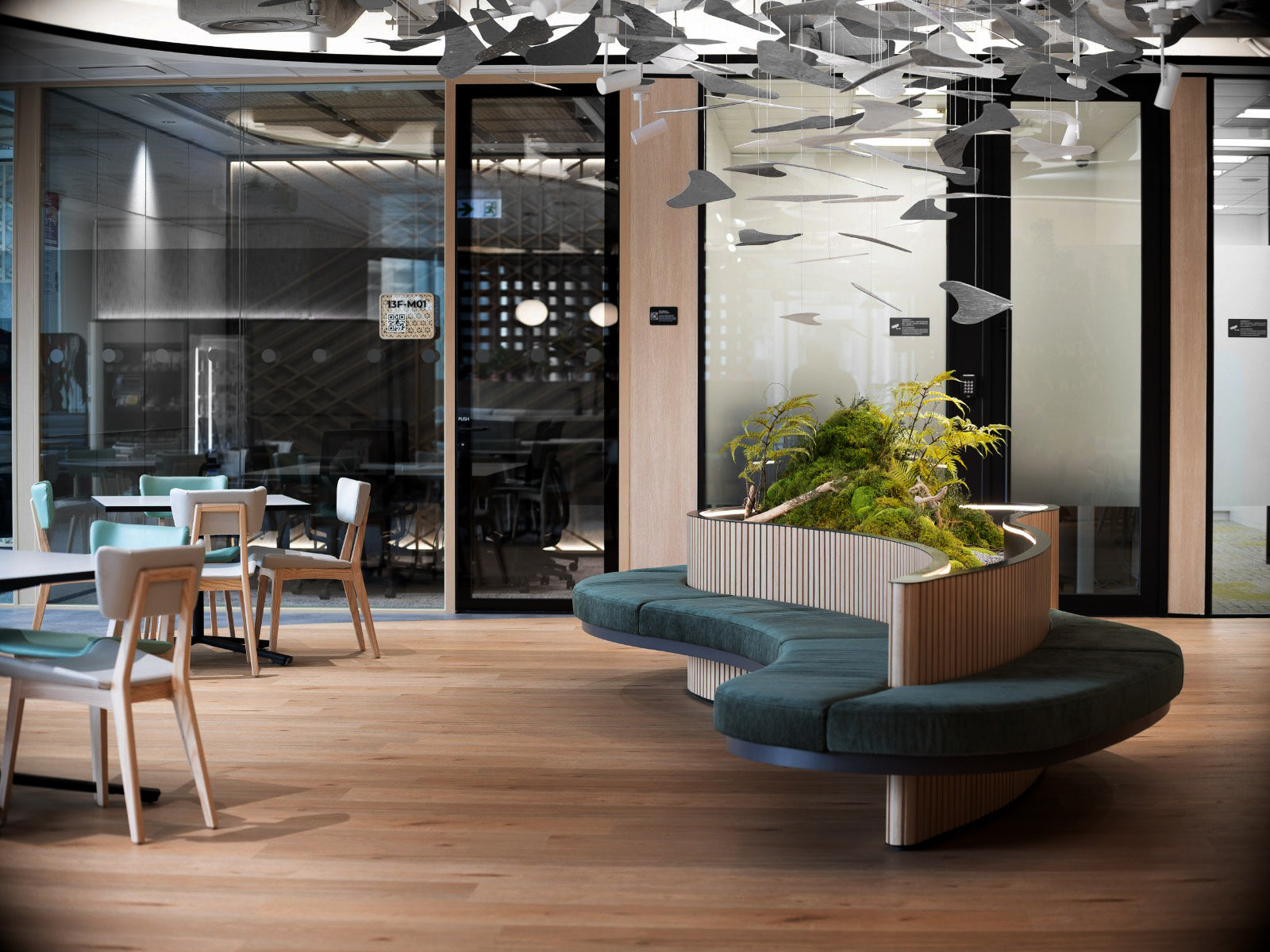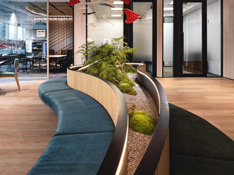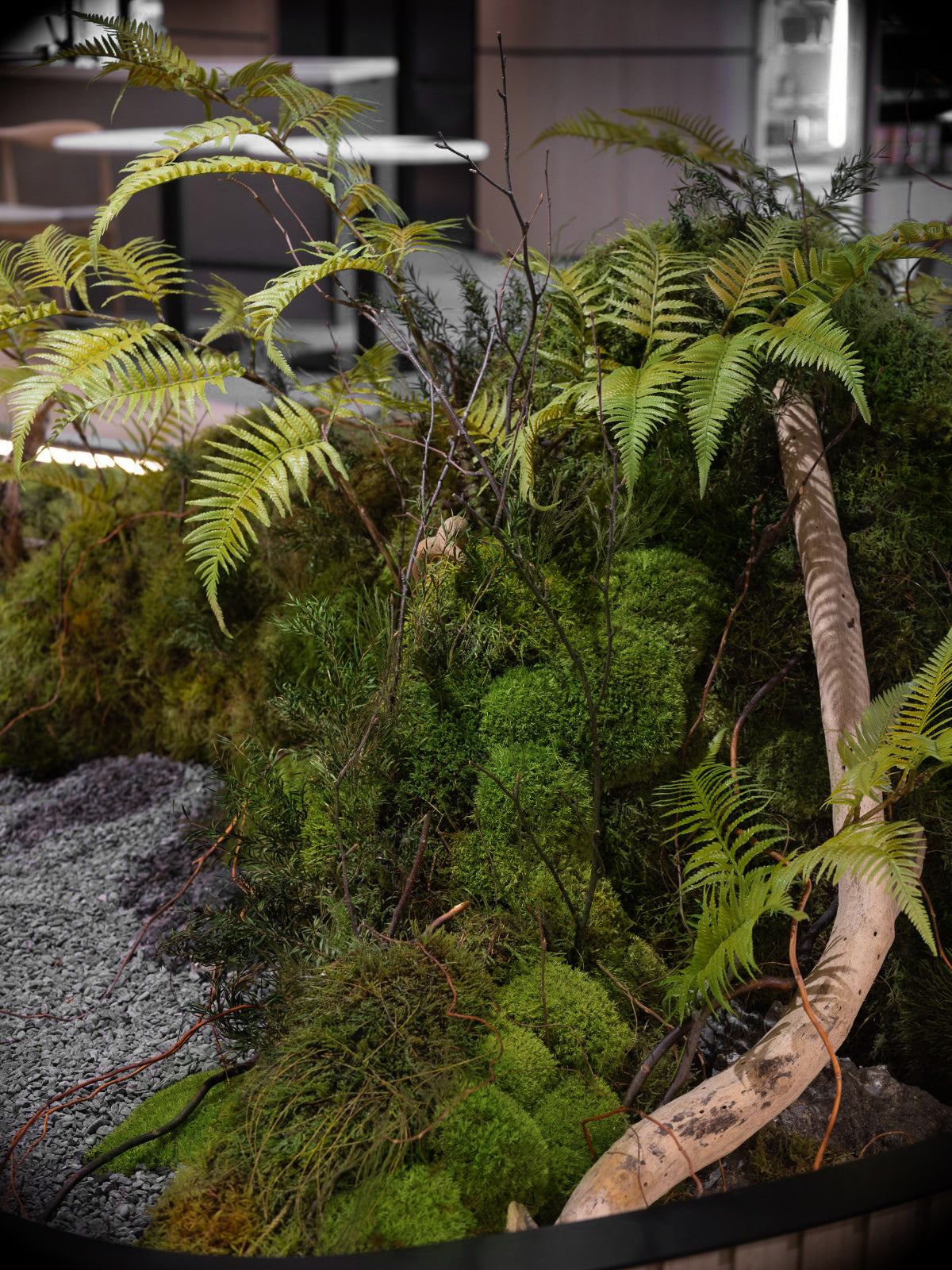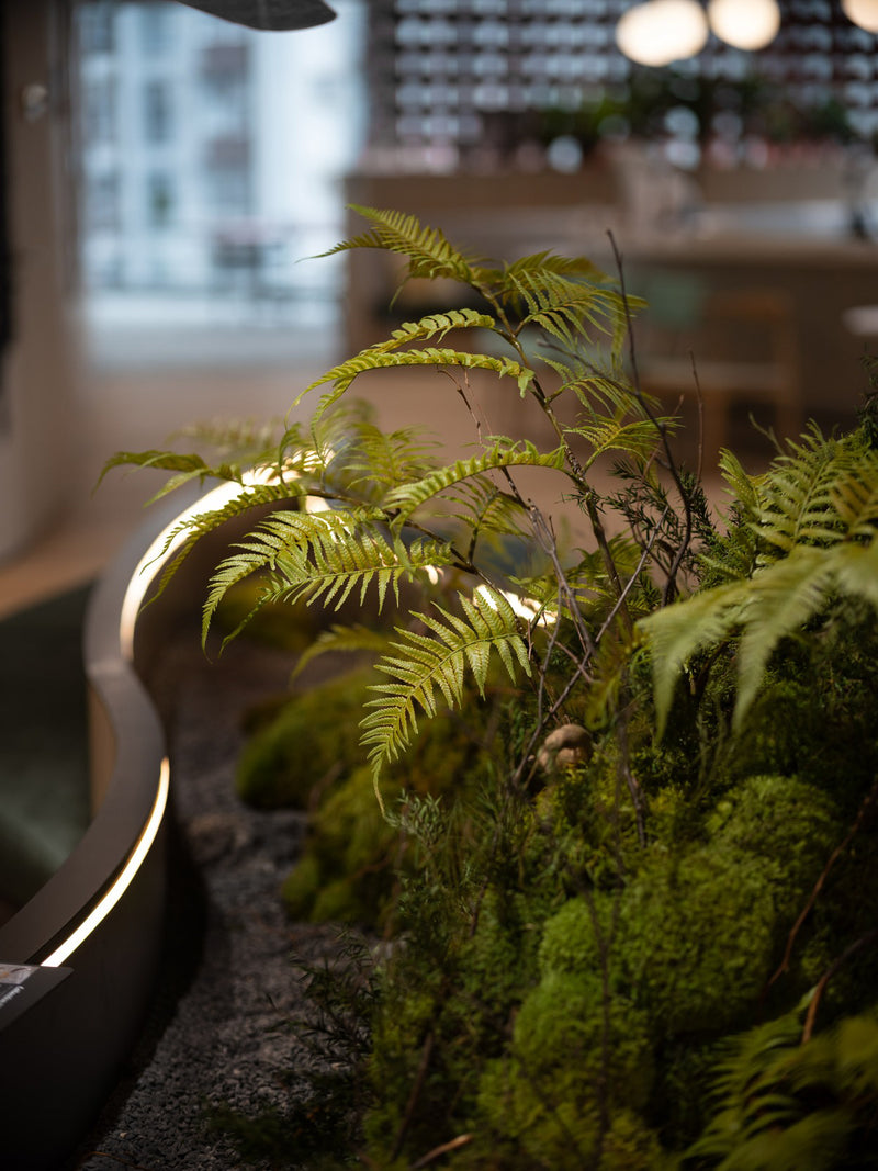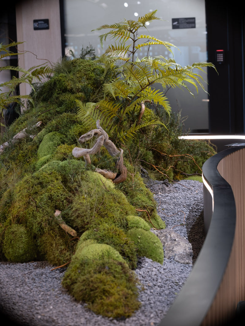 To elevate the natural beauty of the driftwood and enhance the depth of the contoured moss, LED light strips were strategically added, creating a dynamic interplay of light and shadow. Originally conceptualized by Envisone Studio, the design was further enhanced to give the space more room to breathe, resulting in a harmonious balance between nature and artistry. The completed installation is both a testament to sustainability and a visual celebration of the serene, tropical vibe the client envisioned.