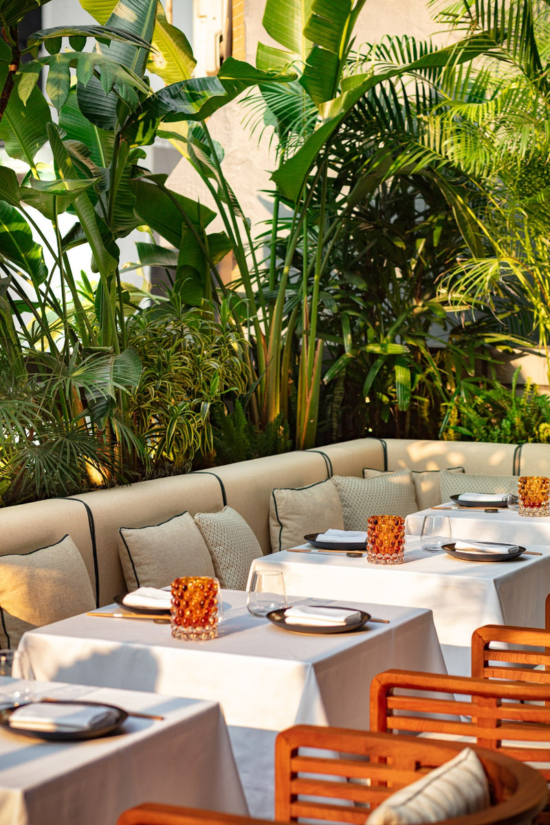 In phase two, we focused on the ground-floor entrance, dressing the space to establish a vibrant and welcoming atmosphere upon arrival. Collaborating closely with Tara Bernard, the interior designer behind the hotel, we fine-tuned plant selections to align with her vision and The Hari brand.